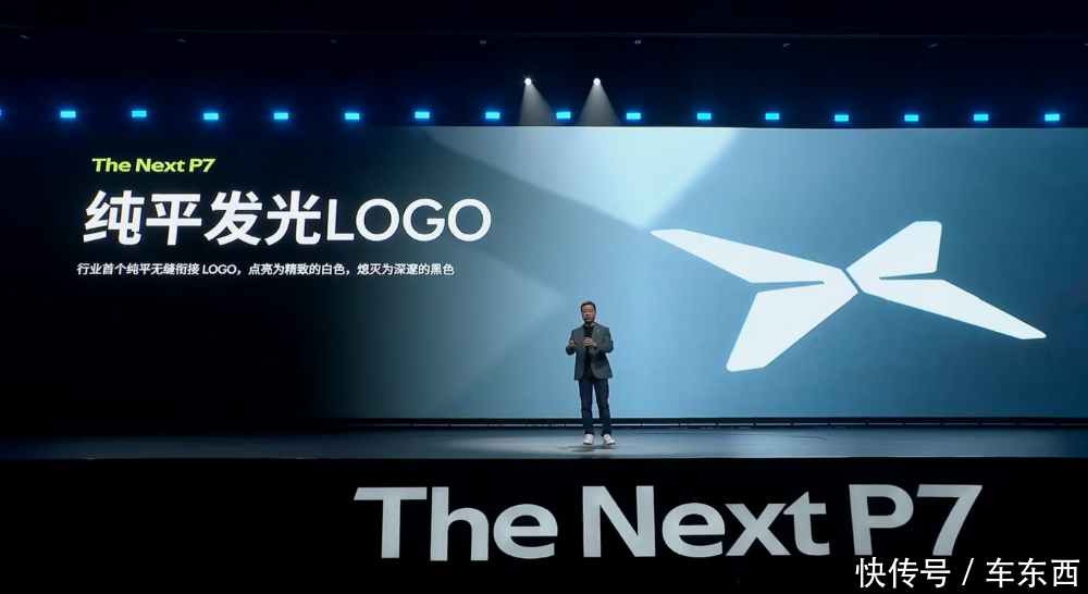 有一个值得注意的细节是,何小鹏提到了全新小鹏P7上一个有趣的设计,其在前脸上采用了纯平LOGO的设计,点亮为白色,熄灭时是纯黑色,很有质感。