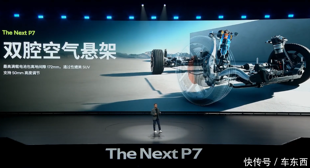 另外,全新小鹏P7全系标配双腔空气悬架,最高离地间距可以调至172毫米,通过性甚至媲美不少SUV。