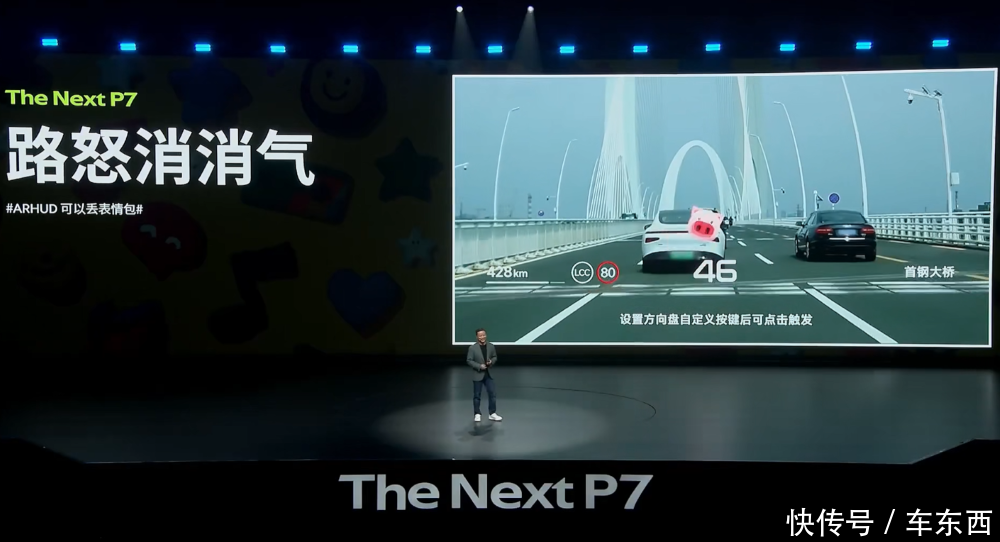 全新小鹏P7可以在AR-HUD上虚拟丢表情包