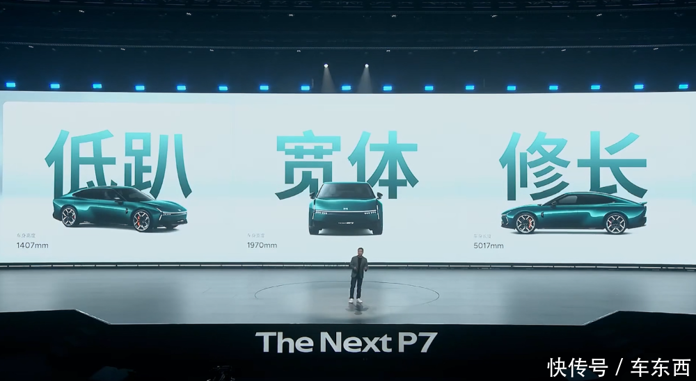 全新小鹏P7采用了“Less Is More”的设计理念,何小鹏首先介绍了全新小鹏P7的车身姿态,提到了“低趴”、“宽体”和“修长”三个关键词。