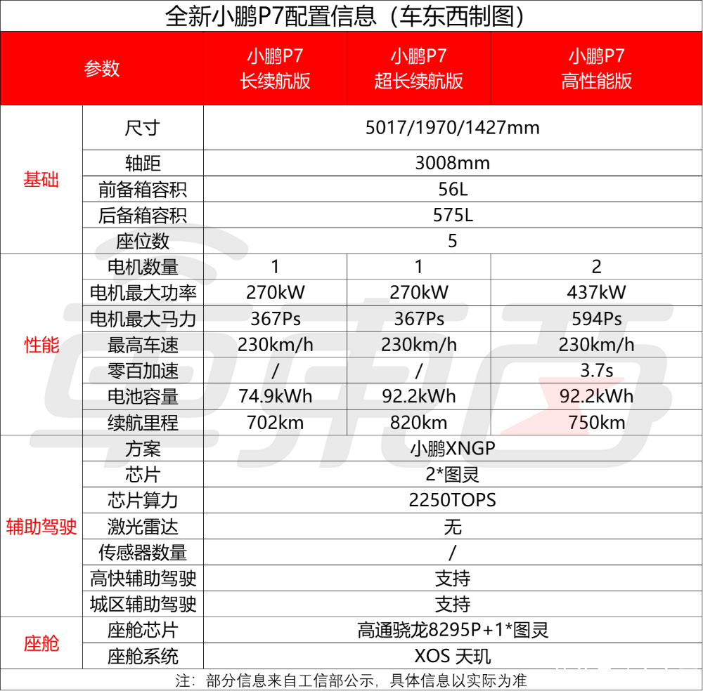 虽然此次发布会没有透露全新小鹏P7的全部参数配置,不过全新小鹏P7此前已经出现了5月的工信部公示信息中,车身尺寸和动力续航部分的参数已经公开。