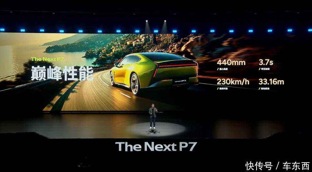 性能参数上,全新小鹏P7零百加速最快可达3.7秒,最高时速可达230km/h,制动距离33.16m。